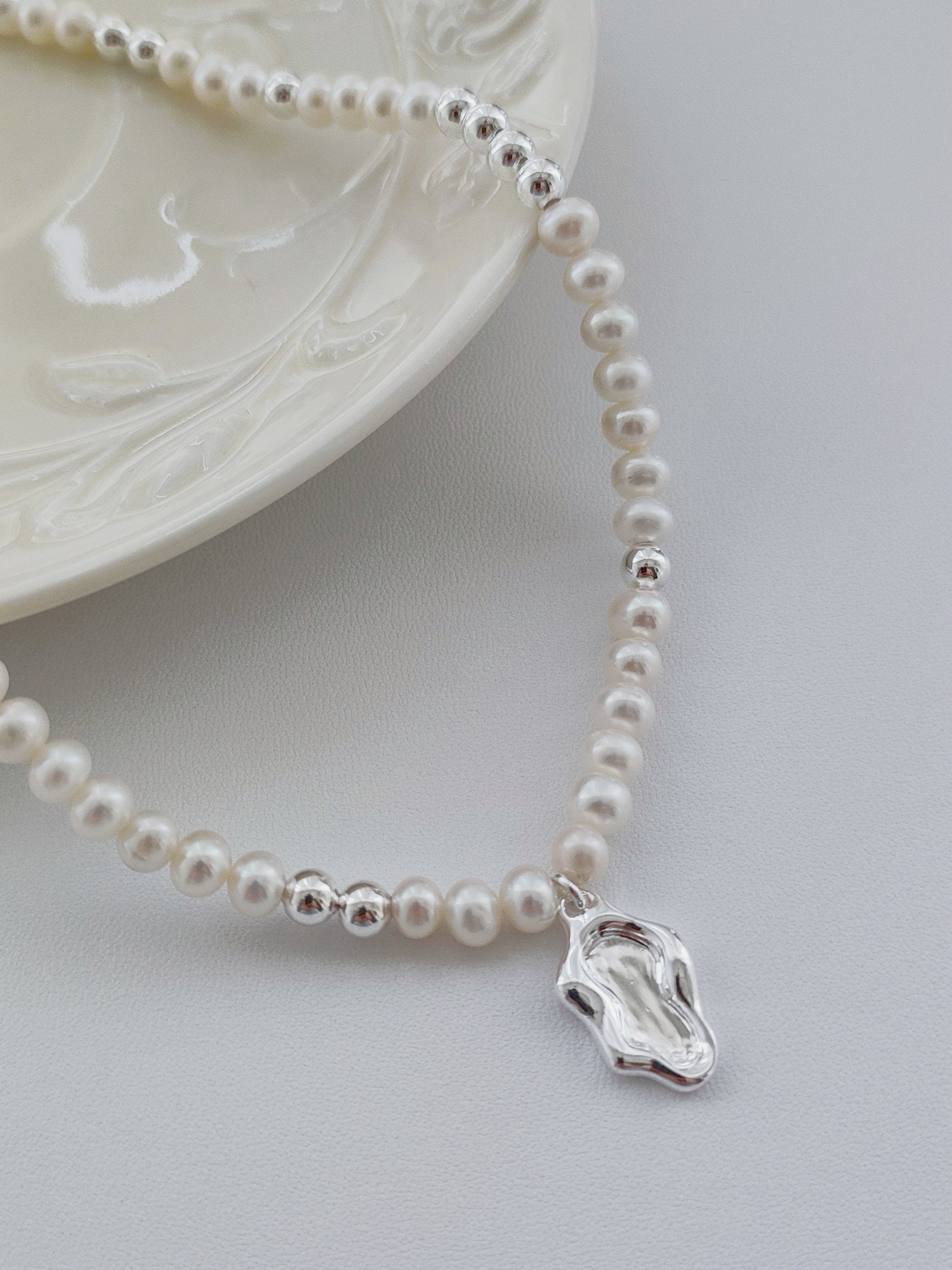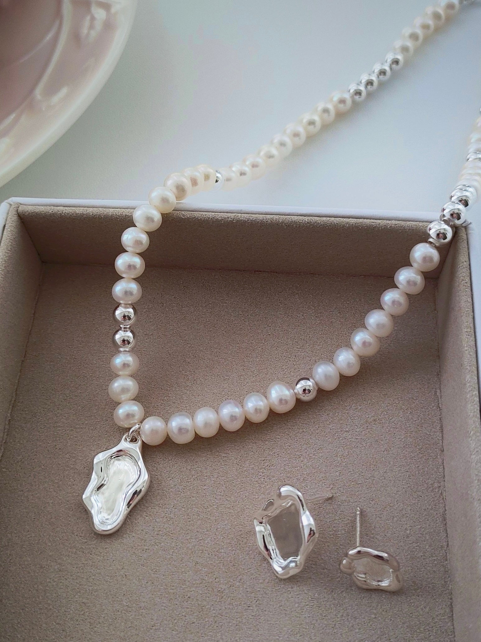 Collier de perles Zen Lakeside – Pendentif en argent fluide